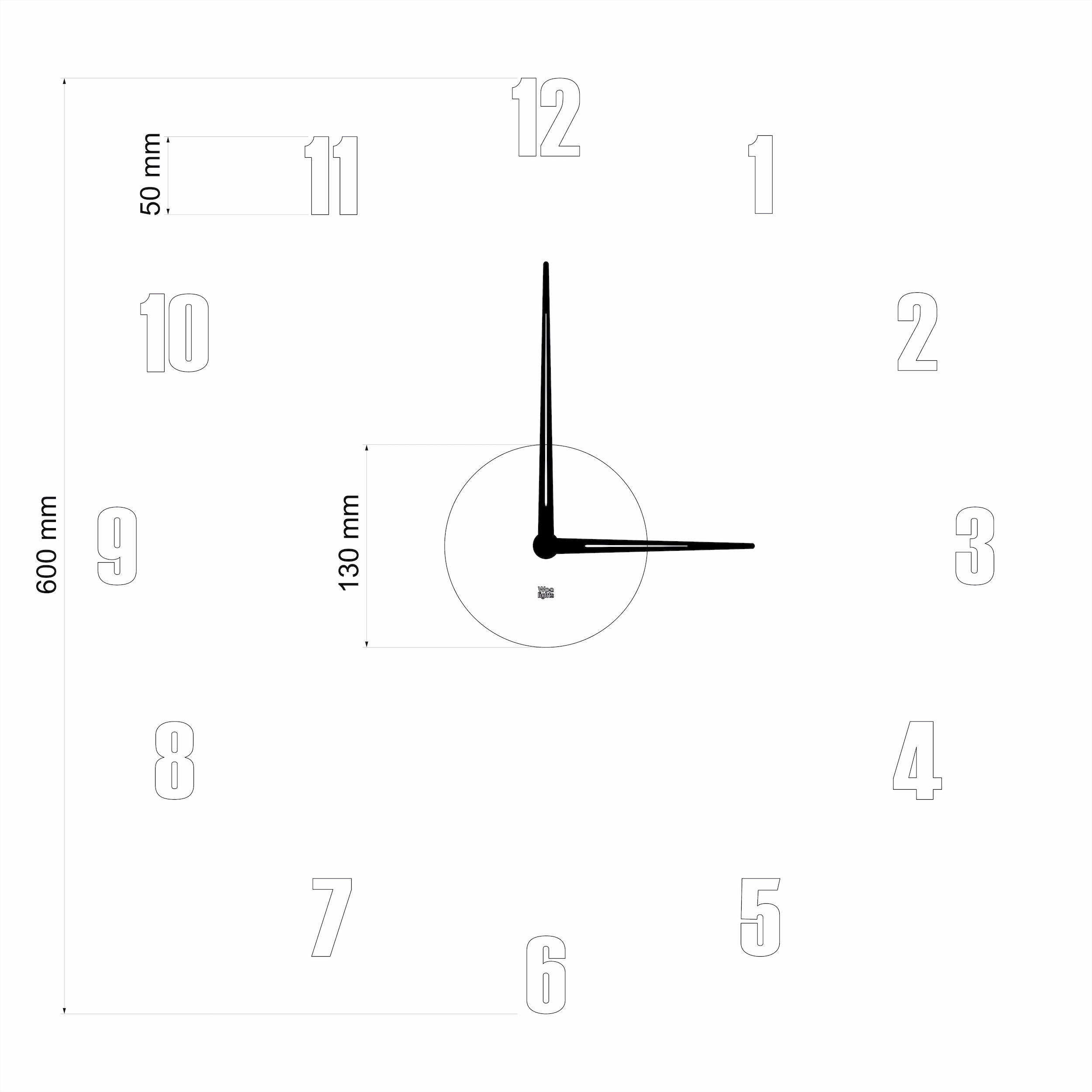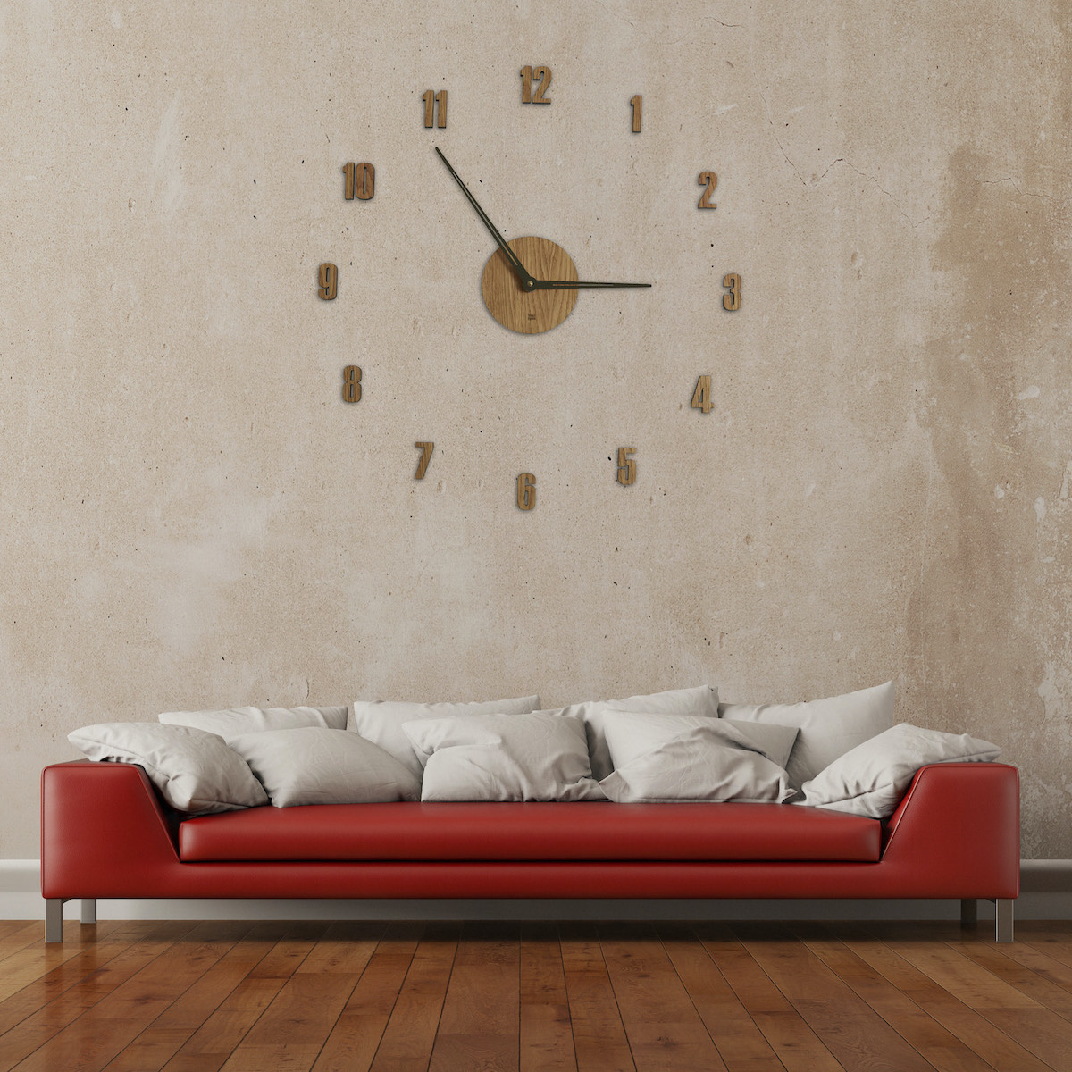 Modern stylish wall clock made of wood. Perfect wall decoration for living rooms as well as offices. Equipped with high quality precise made in Germany JungHans W 838 clock movement, this clock always shows accurate time. Depends on your needs, thanks to attached template, you can easy mount it as 40 cm diameter or 60 cm diameter clock.